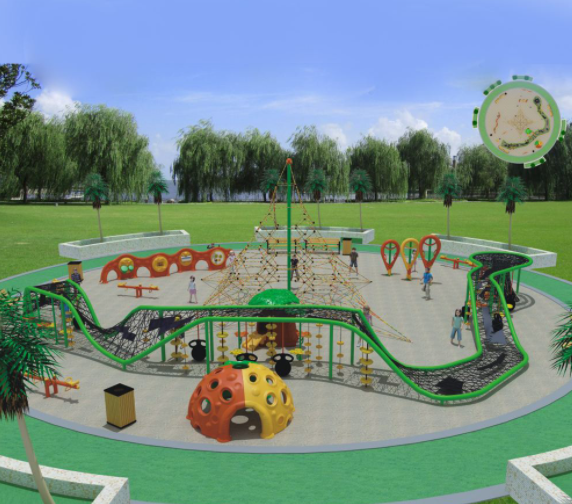 游樂場設備本身要吸引眼球,要有趣味性,地形設計高低起伏,配合設施趣味豐富